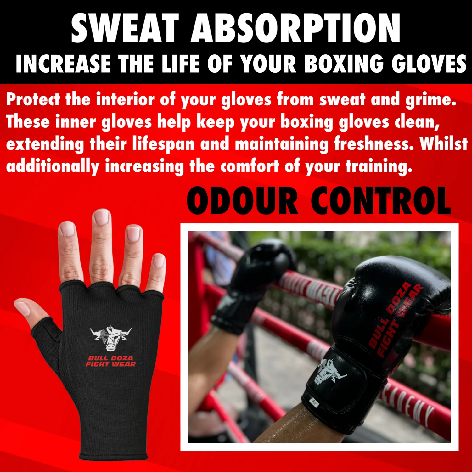 - Sweat Absorption Odour Control: These inner gloves help control boxing gloves odor, keeping your boxing gloves smelling fresh and reducing the buildup of unpleasant smells by absorbing the sweat during intense training sessions.