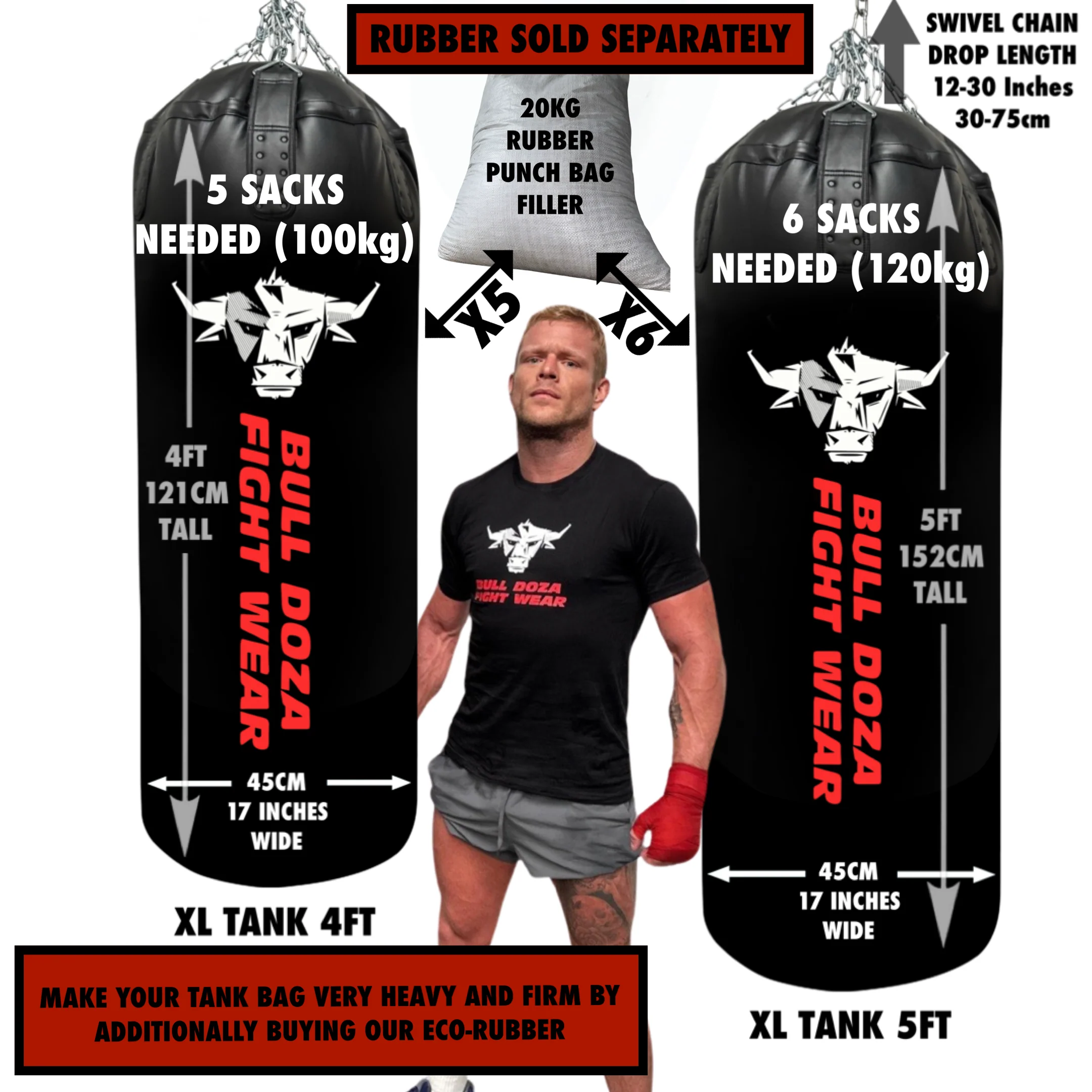 If you are a professional martial artist and want a very firm heavy punch bag you can also shop our ecoĀ rubber filler separately which makes this self-fill bag aĀ serious heavy bag.